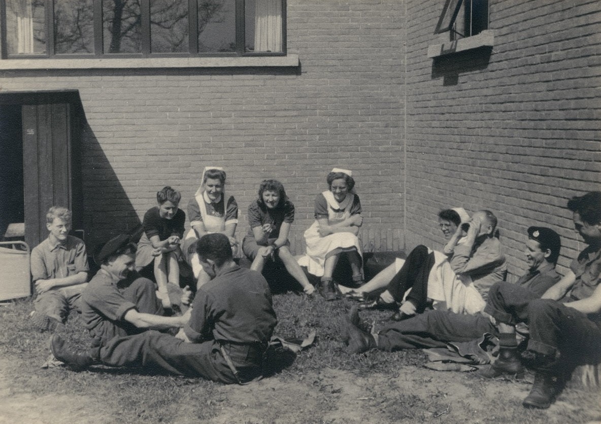 Images above: Both taken on 15th april 1945, lunch at the library and a midday brake at the Kröller-Müller museum, which functioned as an emergency hospital at the time (bron: Kröller-Möller museum)